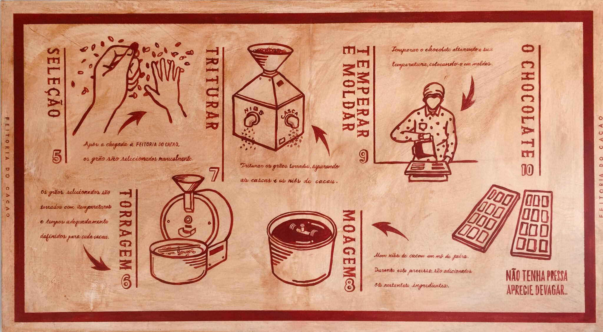 Poderíamos fazer chocolate em maiores quantidades, poderíamos não ser tão preocupadas em comprar o melhor cacau, ou em pagar um preço mais baixo pela matéria prima: seria mais barato e muito menos trabalhoso. Mas a nossa obsessão em obtermos o melhor chocolate de cada cacau, leva-nos a dedicar todo o nosso cuidado e alma ao que fazemos.